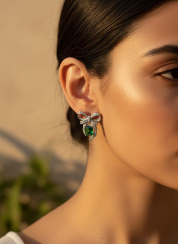 گوشواره زنانه جواهری استیل با نگین سبز۳۵۹٬۰۰۰ 10%